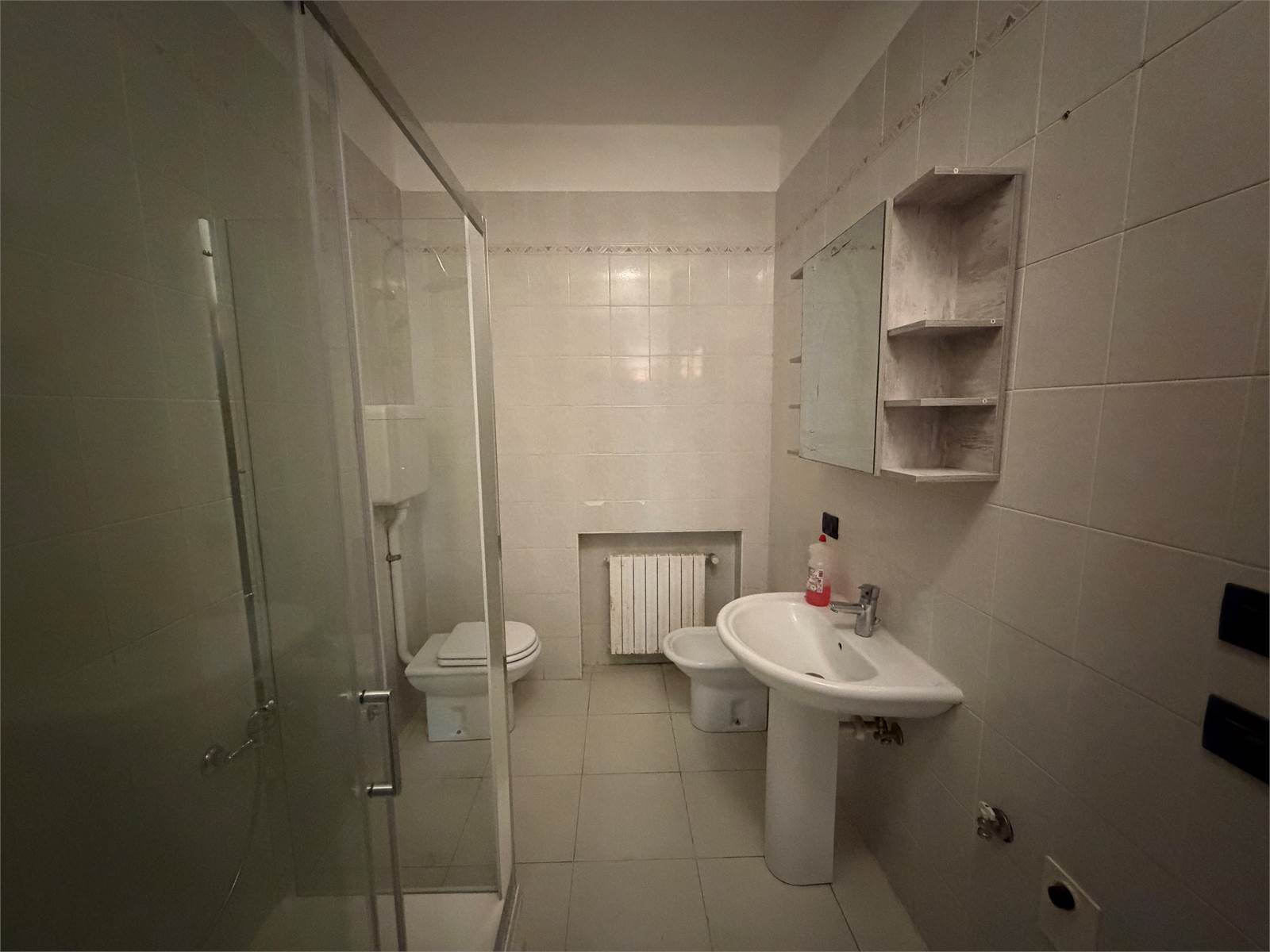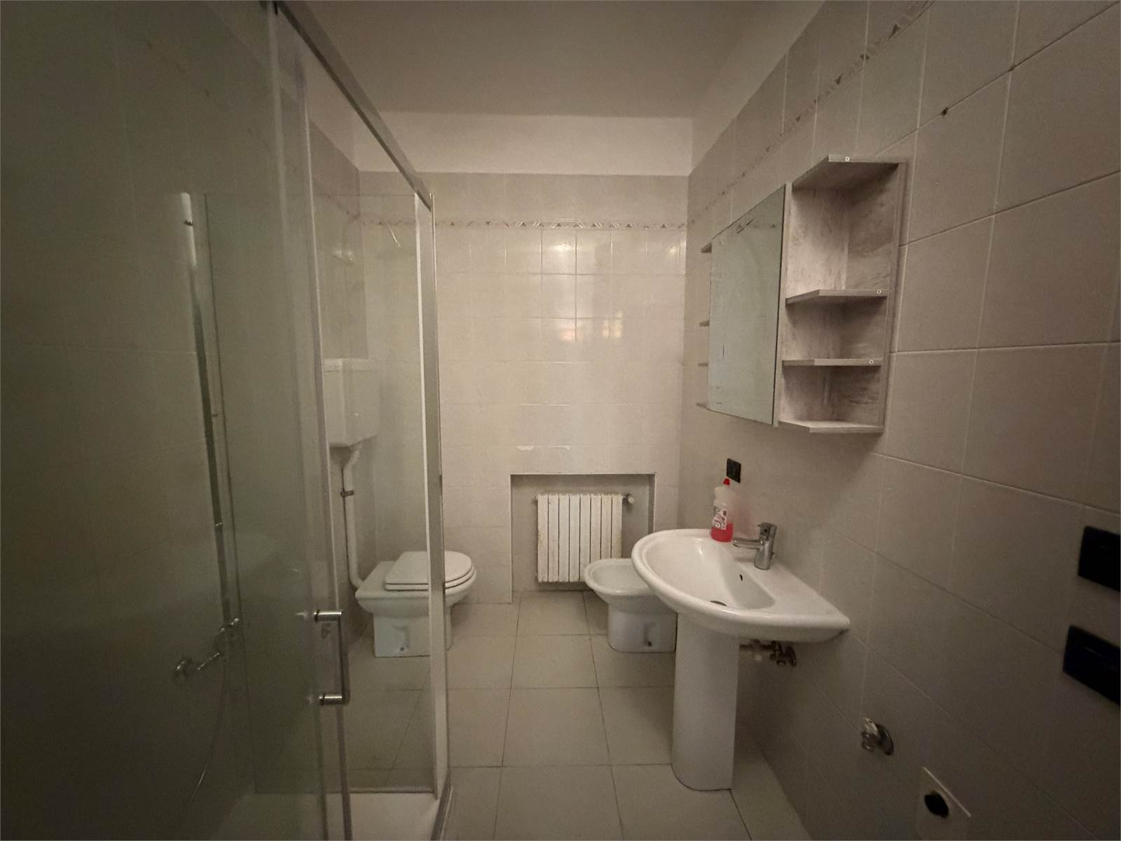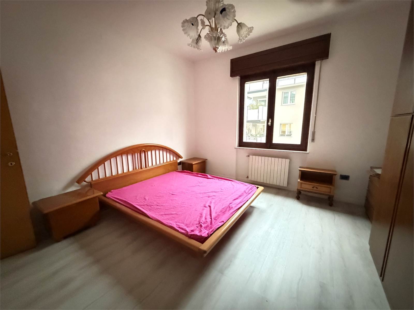 Ingresso, soggiorno con accesso al balcone, cucina abitabile, tre camere da letto (due matrimoniali ed una singola), 1 bagno con box doccia nuovo appena installato, balcone e posto auto privato coperto.
