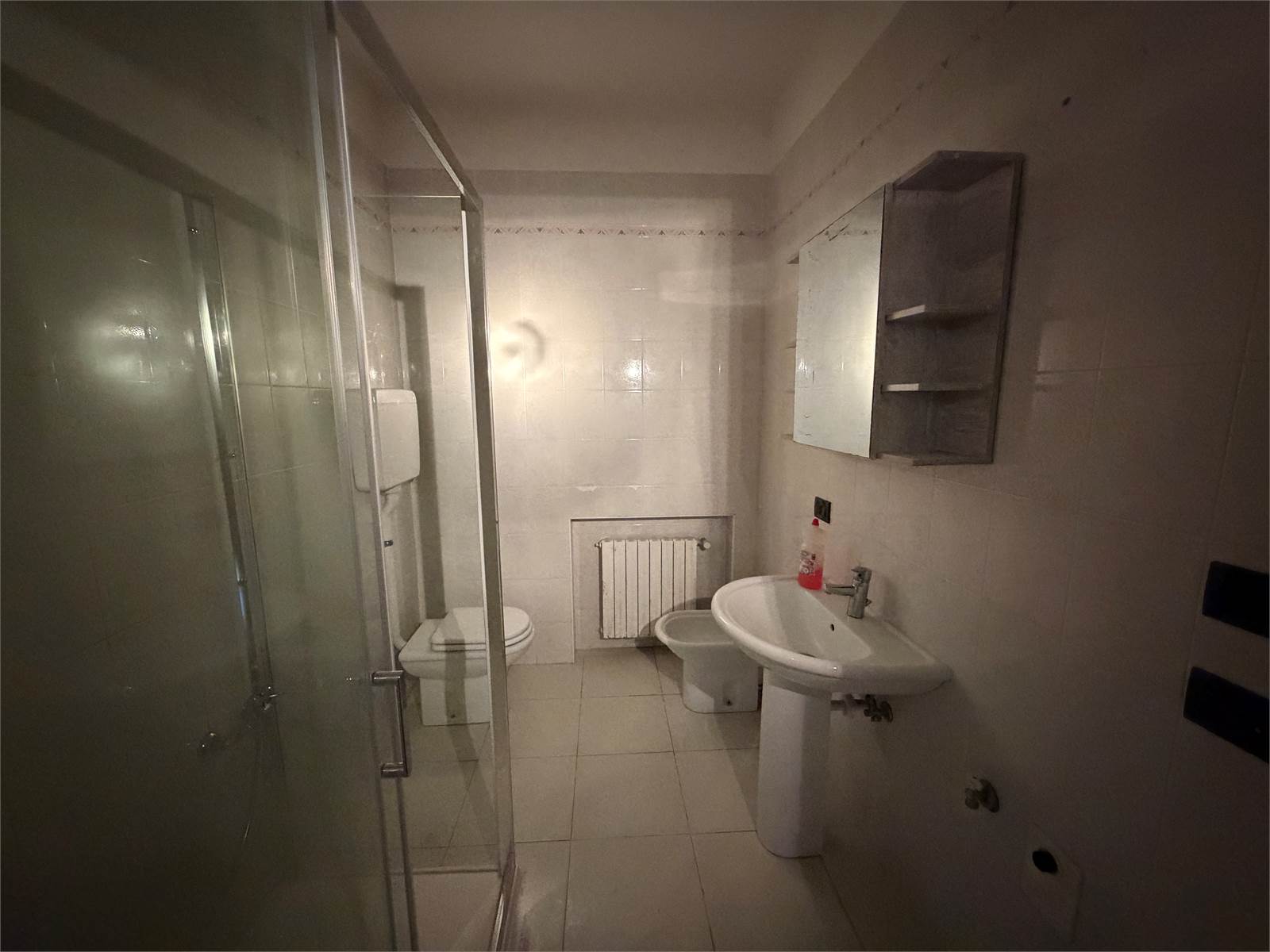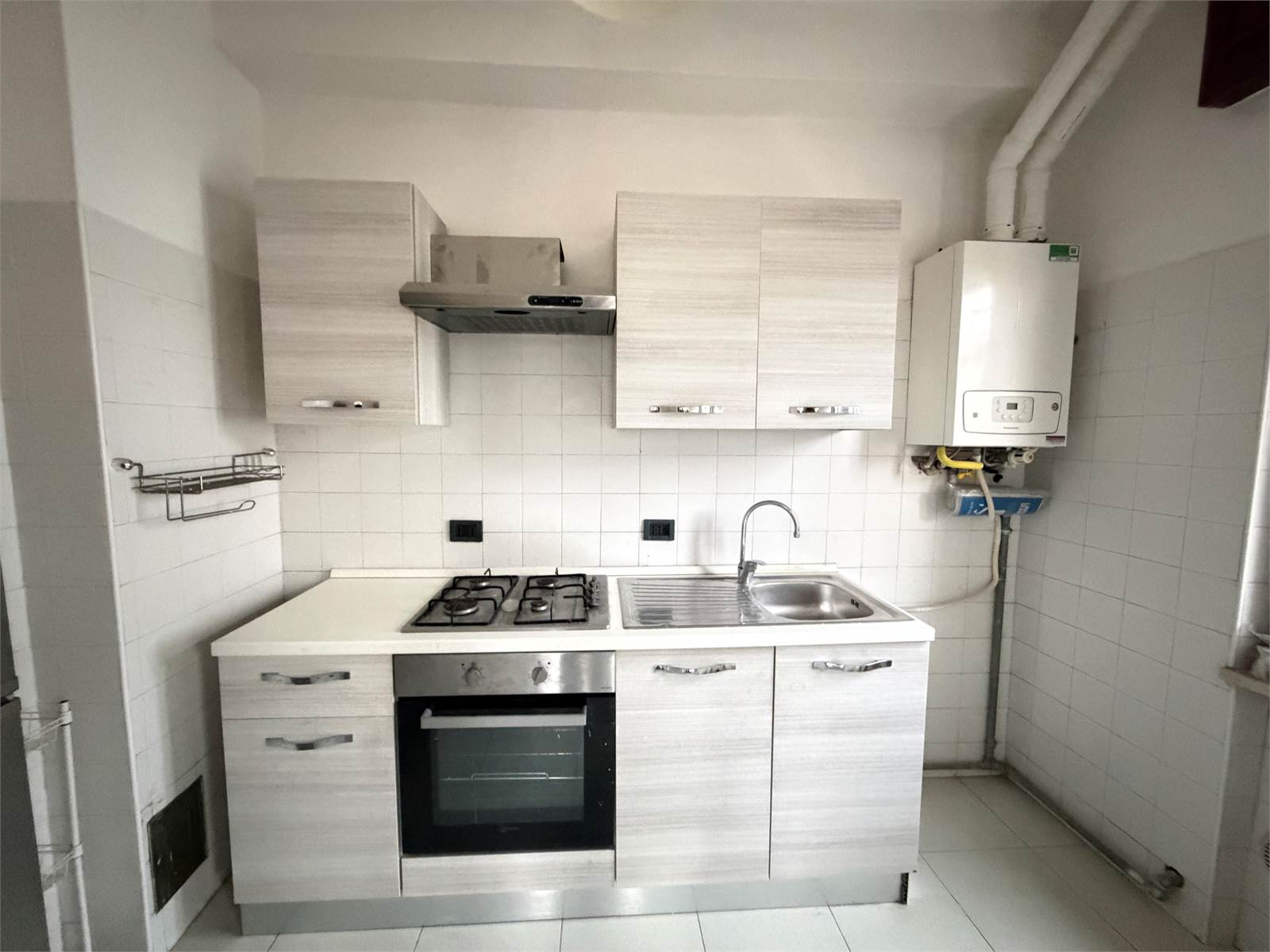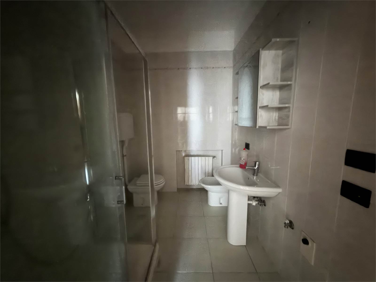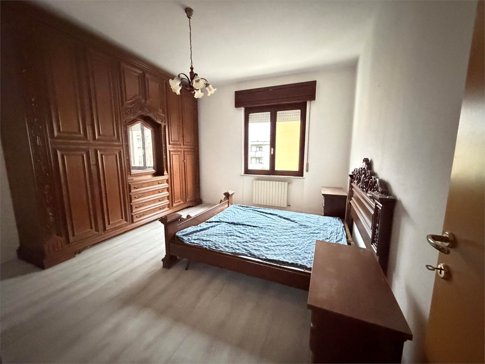Ingresso, soggiorno con accesso al balcone, cucina abitabile, tre camere da letto (due matrimoniali ed una singola), 1 bagno con box doccia nuovo appena installato, balcone e posto auto privato coperto.